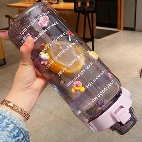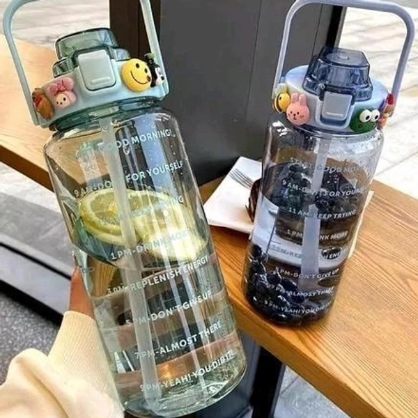 Name: jesilo Plastic Water Bottel with Straw & Time Marker, Large-Capacity Unbreakable & Leak-Proof BPA Free Motivational Water Bottles for Gym, Office, Sports, Yoga (2 Litre, Pack of 1)