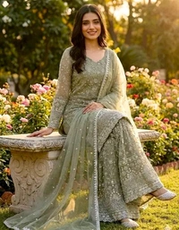M (Bust Size: 38 m, Shoulder Size: 14 m, Kurta Waist Size: 36 m, Top Length Size: 38 m, Bottom Waist Size: 36 m, Bottom Length Size: 40 m, Dupatta Length Size: 2.1 m)